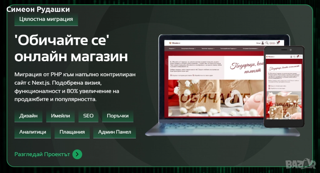 И все пак ако използвате искате или използвате или искате да използвате платформи като Shopify, Wordpress, но искате сайта да изглежда по ваш вкус, сега при нас това вече е възможно. Данните от платформата се консумират от мануално създадед проект и вашата идея за визията ще бъде лесно и точно реализирана