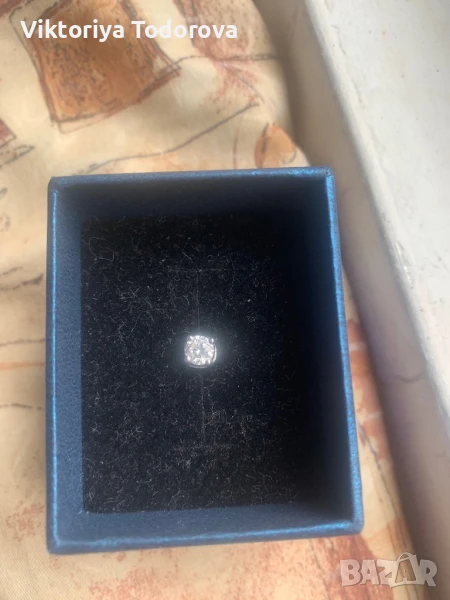 НОВА ЗЛАТНА ОБЕЦА С ЕСТ.БЯЛ ДИАМАНТ -0,25 карата-4мм в диаметър.