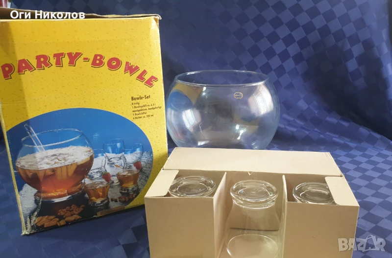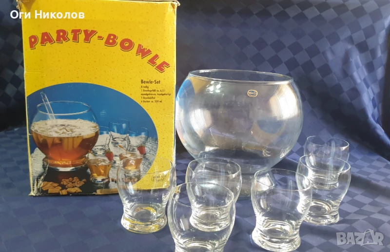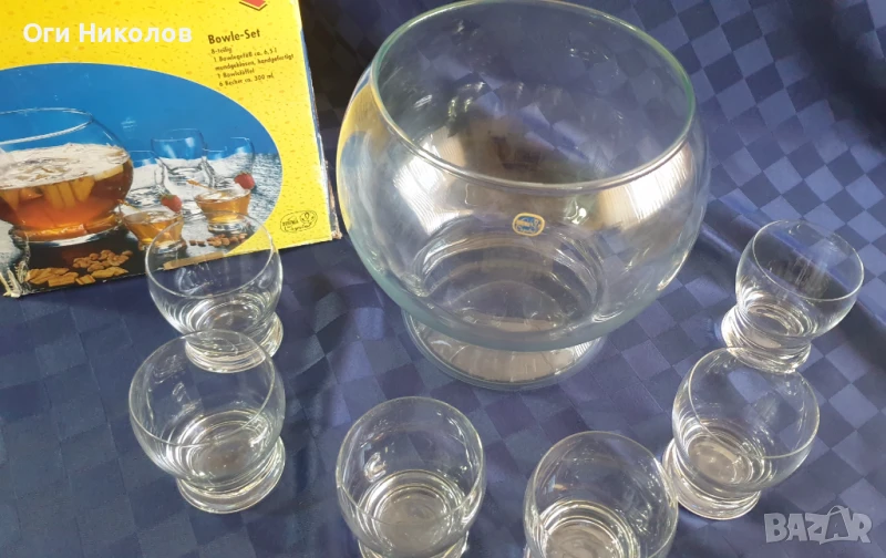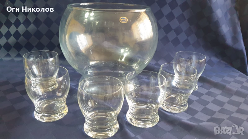 Сервиз за боле,сангрия и др. -BOHEMIA. Ръчно издухван кристал.Неупотребяван,без забележки.Вместимост съд - 6 500 мл. Вместимост чаша - 300 мл.