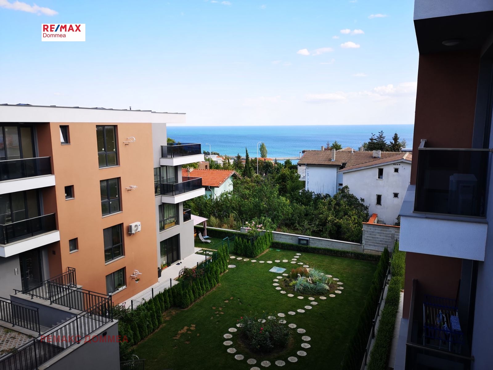 Жилището е напълно обзаведено и притежава климатик за допълнителен комфорт. Освен че предлага балкон с гледка към морето, апартаментът има и допълнителни екстри като перално помещение в самия апартамент.