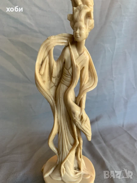 Винтидж фигурка, изобразяваща японска гейша с щъркел.