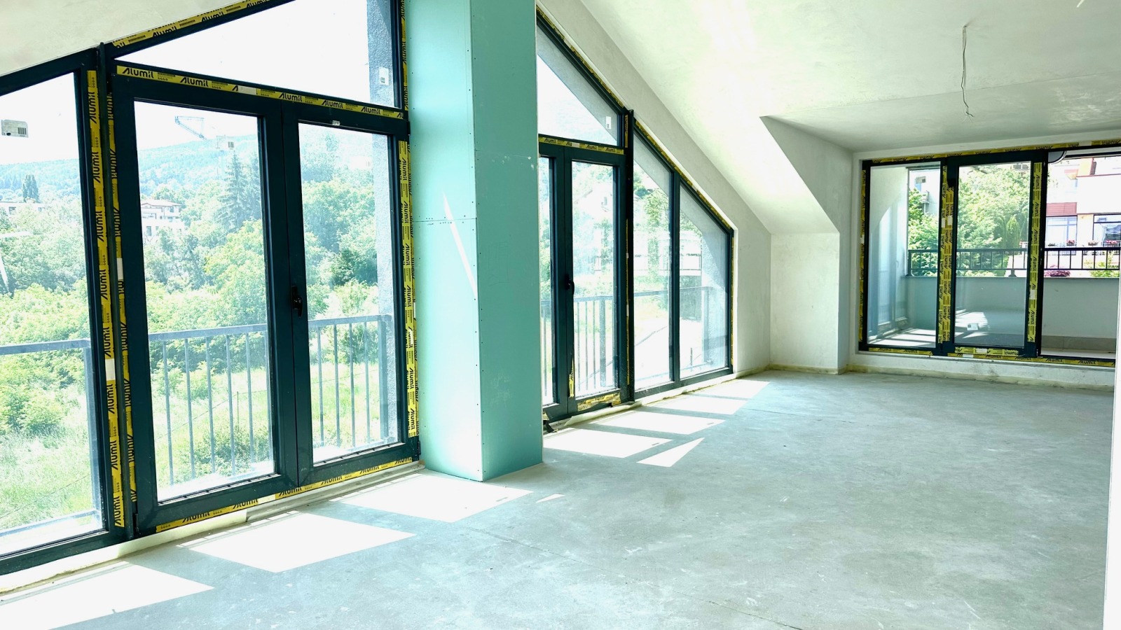 Жилището е специално и представлява: входно антре, хол с трапезария и кухненски бокс, прилежаща южна тераса тип лоджия с гледка към планината, 3 спални, като от едната се разкрива невероятна гледка към София, втора спалня, с гледка също към София и вътрешния двор, а и разполага със собствен дрешник и собствена баня, трета спалня, разполагаща със собствена южна тераса, баня с тоалетна, тоалетна за гости и мокро помещение. Чиста жилищна площ 167 кв.м. Изложение - изток/север/юг/. Продава се при степен на завършеност - шпакловка и замазка, монтирана блиндирана входна врата и тъй като отоплението е на газ - монтирано газово котле с 10 г. гаранция, видеонаблюдение от домофонната система, височината на таваните е 3.00 м.