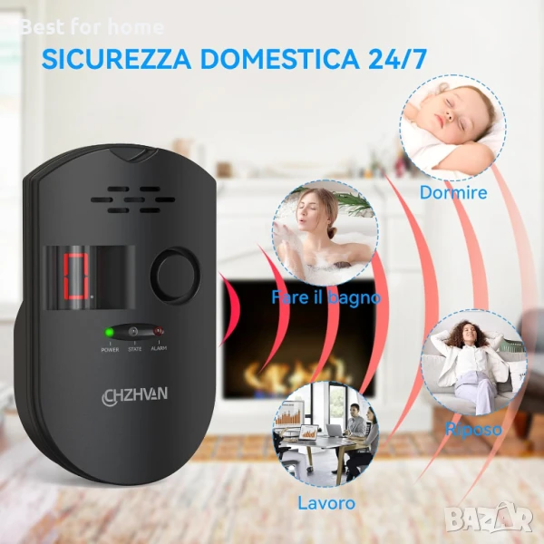 Поддържане на безопасност - Когато изтичането на горим газ (метан за готвене/природен газ/пропан, къмпинг) надвиши стандартите, газовият детектор излъчва бавна, ускорена, бърза и непрекъсната аларма от 85dB. Помага за защитата на хората и имуществото. Забележка: Не може да открива токсични газове, като например CO.