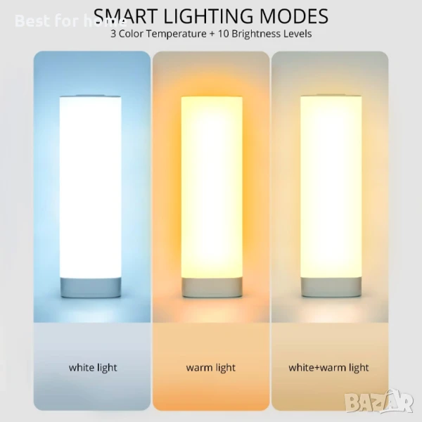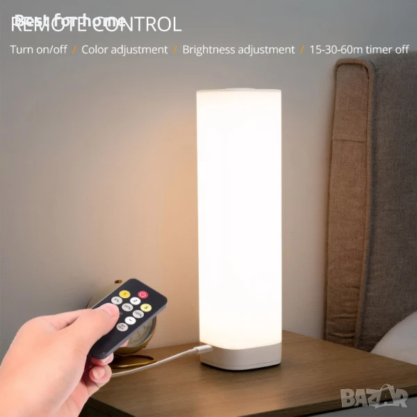 Semlos LED настолна лампа за спалня, нощна лампа за четене с 3 цвята и 10 димируеми яркости, нощна лампа с сензорен екран и дистанционно управление, настолна лампа за нощно шкафче, легла и офис.