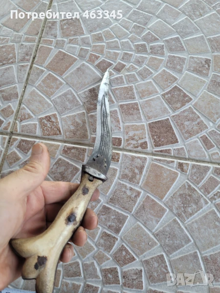 Изключително рядък индо-персийски нож. Ножът е с особено острие, с много по-силна S-образна извивка от ятагана. Бронзов гард и дръжка от кост. Чирените са здрави, без отчупено и силно наранено. Острието има малко следи от ръжда, но е непочиствано. Ножът се продава без ножна