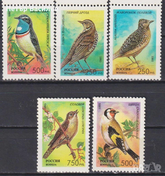 1. Чисти марки (5 х 2) в малки листа (2) Фауна Пойни птици 1995 от Русия. Цена 10,00 лева (сн. 1)