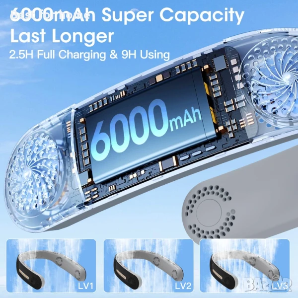 【Батерия 6000mAh】: С дълготрайна батерия от 6000mAh, нашият вентилатор за врата може да работи от 4 до 18 часа (в зависимост от различните скорости) с едно зареждане. Нашият преносим вентилатор за врата може лесно да се зарежда от компютър, адаптер, външна батерия, лаптоп и други. Това го прави идеалният спътник за продължителни дейности на открито или горещи летни дни.
