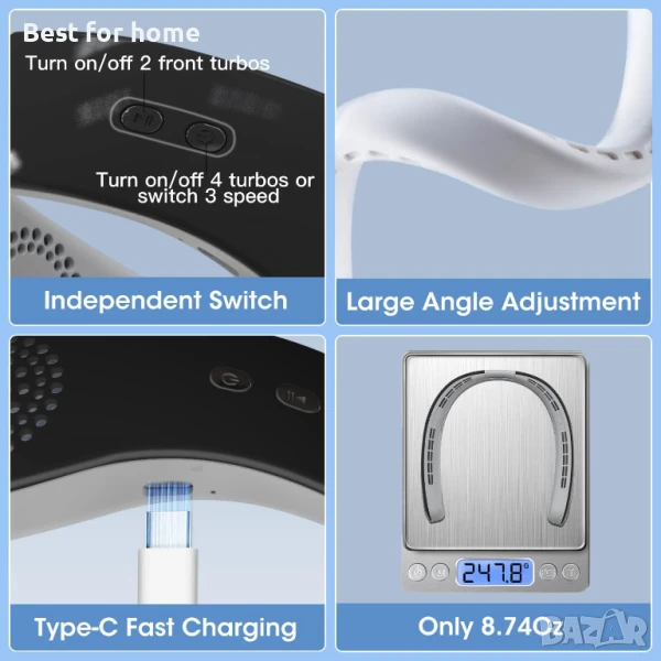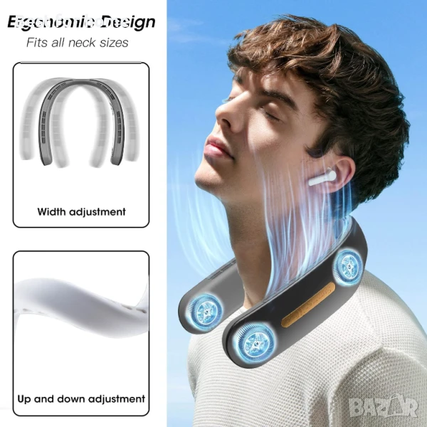 【Дизайн за носене】: Нашият ултралек и щадящ кожата вентилатор за врата от ABS материал е проектиран да натоварва по-малко врата ви. Огъваемият му дизайн ви позволява да регулирате ъгъла на вентилатора според вашите предпочитания за перфектно прилягане. Идеален за работа на открито, фитнес зала, офис, косене на трева, работа в двора, разходки в свободното време, шофиране, пътуване, къмпинг и др. Поръчайте своя още днес и победете жегата със стил!