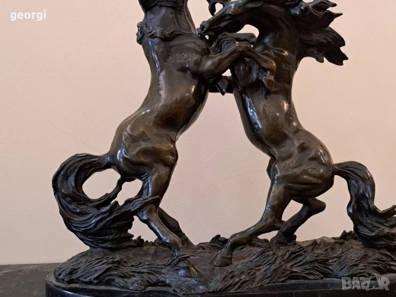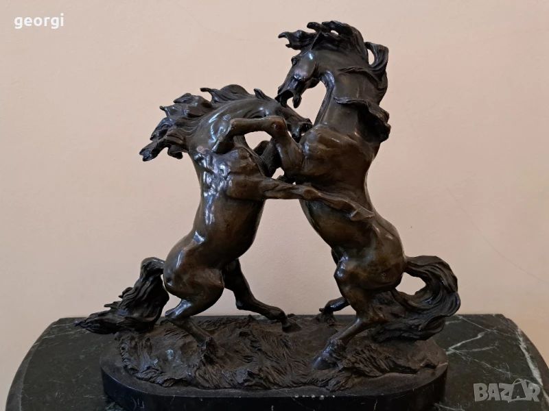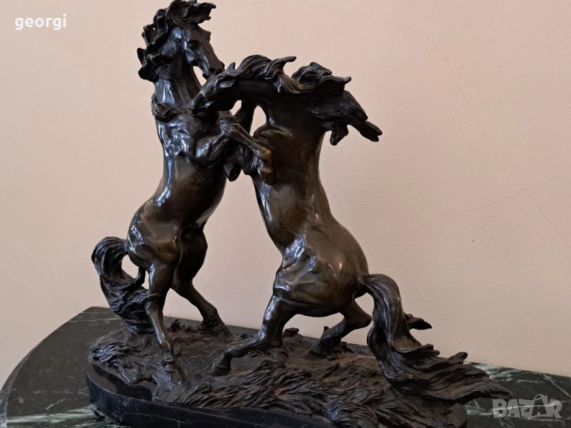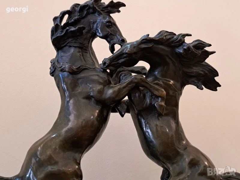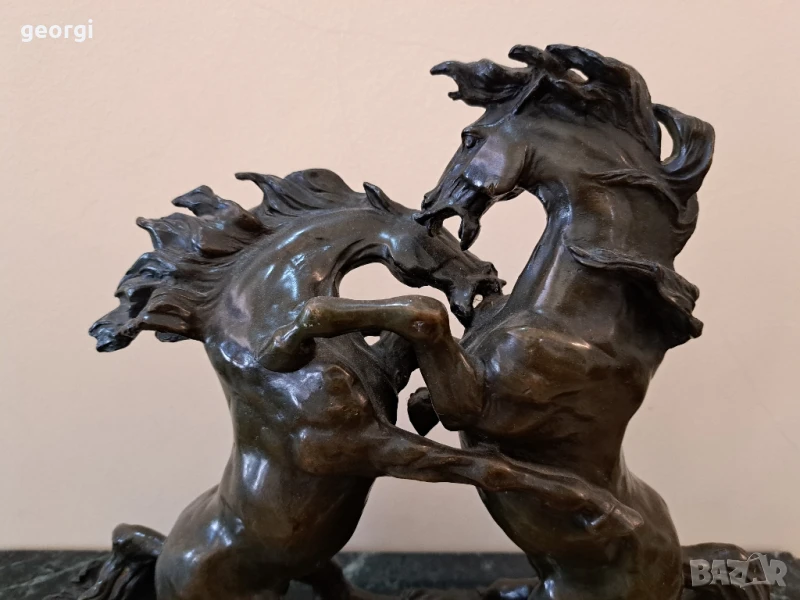 Масивна бронзова скулптура на два коня, в безупречно колекционерско състояние.