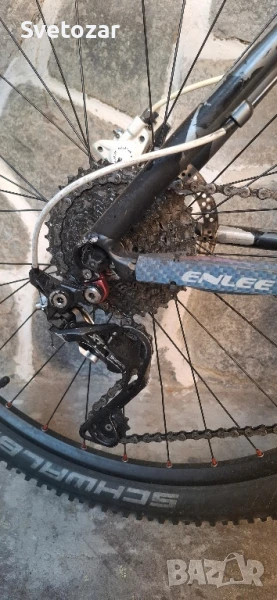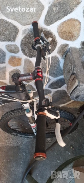 вилка Fox,гуми schwalbe,капли dt swiss,хидравлични спирачки shimano.Мн леко-11кг.Забележки по рамката и предната капла.Само лично.Бартер за скъпа резачка щил или хускварна.Може и с доплащане от мен