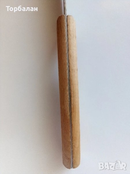 Дръжката е изработена от дърво, което придава естетически вид и осигурява добър захват.