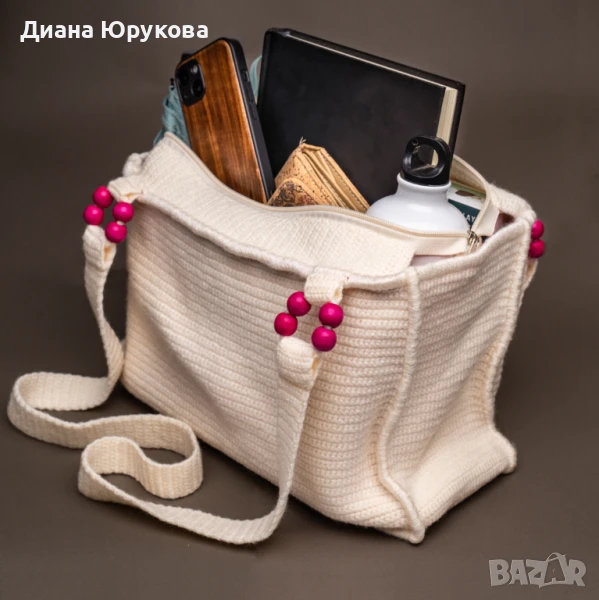 Дамска плетена чанта екрю → Обява 51089641