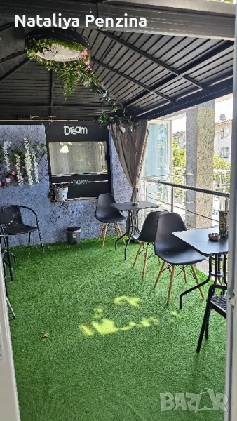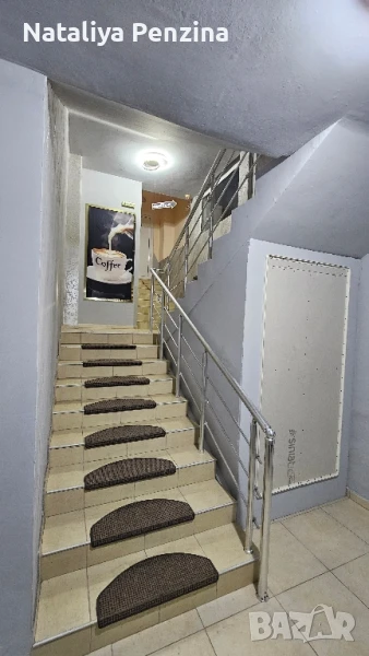 7 стаи (по 32 кв.м) - всяка със санитарен възел, Климатик, Тераса, нов ремонт, Опънати тавани, Под - паркет, модерни мазилки. На 2 етаж кафе-аперитив с професионална кухня, професионална аспирации, 5мивки, облицовка с фаянс, мека мебел, 2 климатика, открита тераса с навес.