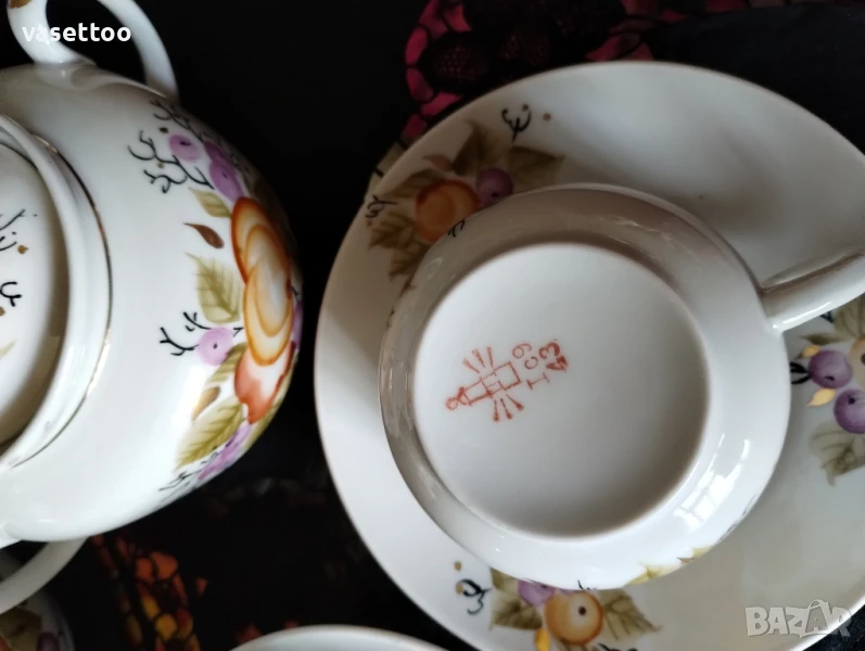 1. Неупотребяван сервиз за чай от шест чаени чаши 6/9.5 см. с вместимост 280 мл. и подложни чинийки 2.5/14 см.-50 лв.