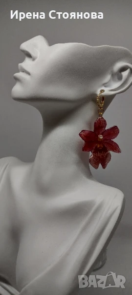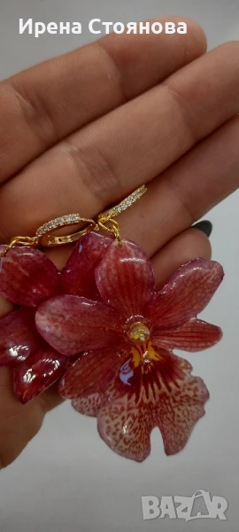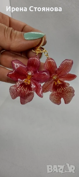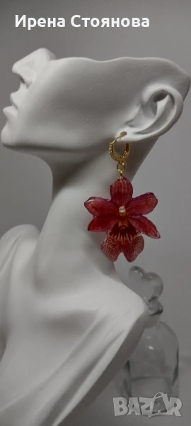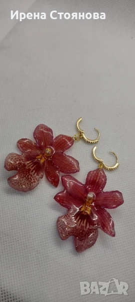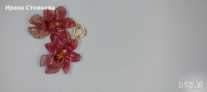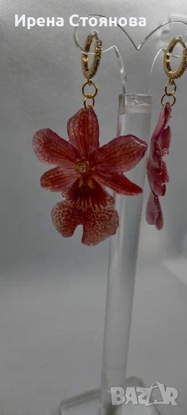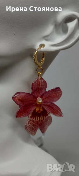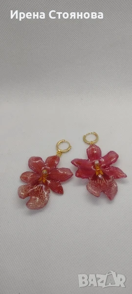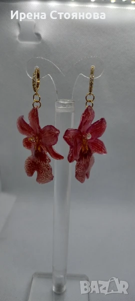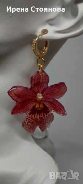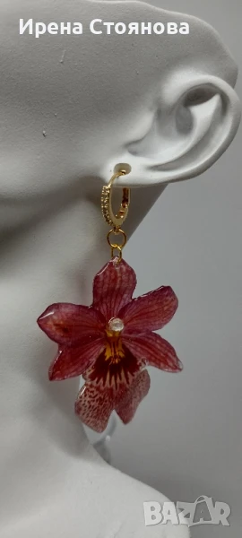 Обеци с естествен цвят на мини орхидея Miltonia. Цветче с размери 5/4,5 см. → Обява 51090714