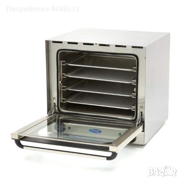 Търсите надежден помощник за вашето заведение? Представяме ви висококачествена конвекторна фурна с мощност 2670W, създадена за интензивна ежедневна употреба в професионална среда. Изпичането е винаги равномерно благодарение на двойната вентилация, а управлението – лесно и интуитивно чрез механичен панел с таймер (до 120 мин.) и термостат (до 300°C).
