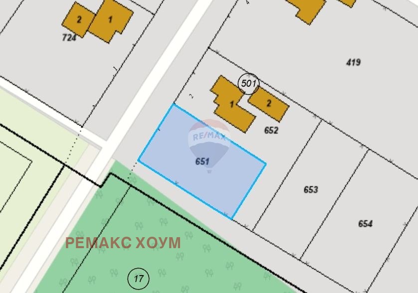 Парцелът е с площ от 1319 кв.м. С правоъгълна форма, равен е и без денивелация. Парцелът е с лице към пътя - 18.14 м. Югоизточно изложение. Имотът представлява два парцела: единият е с площ от 779 кв.м, другият е с площ от 540 кв.м. Продават се заедно. Теренът не е изчистен, обособен и е ограден /отпред и от едната страна с масивна ограда, останалата част е с метална мрежа/. В единия от парцелите се намират две постройки, които са нанесени в кадастъра и по документите. Едната е жилищна сграда еднофамилна едноетажна със застроена площ от 92 кв. м, с ниско застрояване до 10 м. Втората е селскостопанска едноетажна сграда със застроена площ от 52 кв. м, с ниско застрояване до 4 м. И двете постройки са за събаряне. Преди време са се ползвали за живеене. Има и опция за закупуване на още два съседни парцела с площ около 1.200 кв.м.