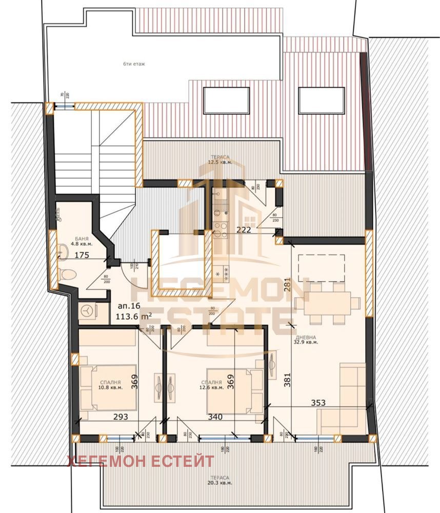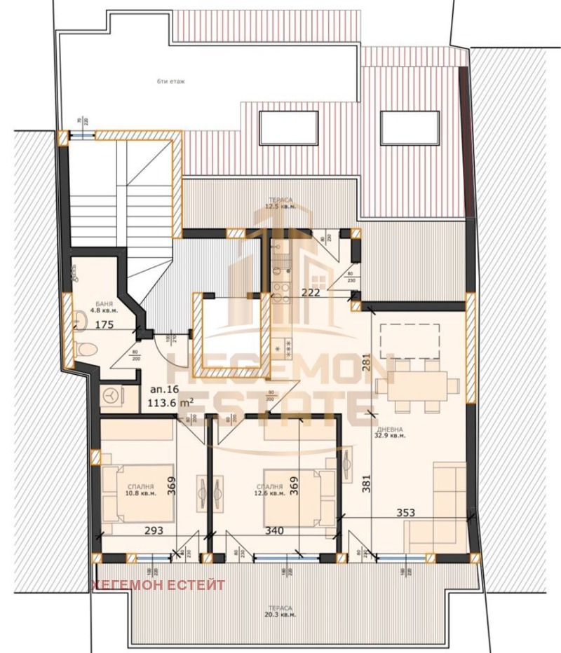 Агенция за недвижими имоти HEGEMON ESTATE предлага на вашето внимание панорамен и слънчев тристаен, тухлен апартамент от 145 кв.м. общо, чисто 113 кв.м., в модерна, новострояща се сграда в кв.Левски, Варна, Акт 15. Акт 16 2026 г. Жилищната сграда се намира в един от атрактивните райони на Варна. Етаж 7 от 7. Асансьор. Разпределение: