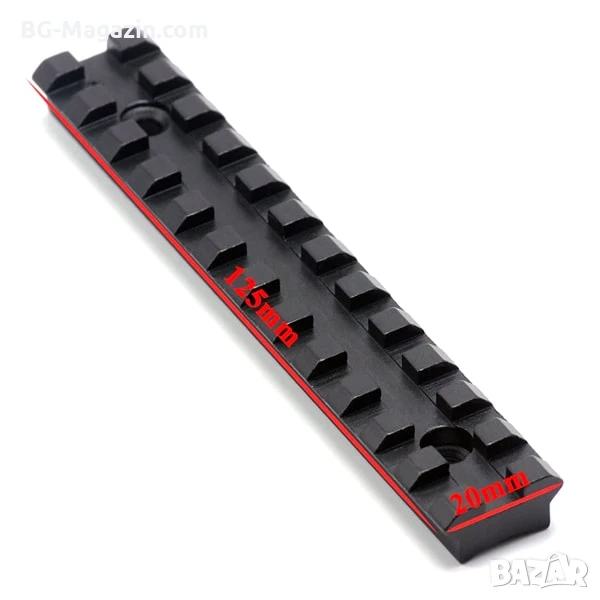 – Дължина и слотове: Дължината от 125 мм и 12-те слота осигуряват достатъчно място за монтаж на различни аксесоари и позволяват регулиране на техните позиции.