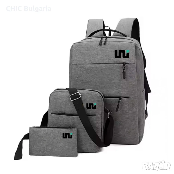 🎒 3 в 1 комплект чанти – голяма раница + чанта за рамо + несесер – в стилен, неутрален цвят и водоустойчива материя