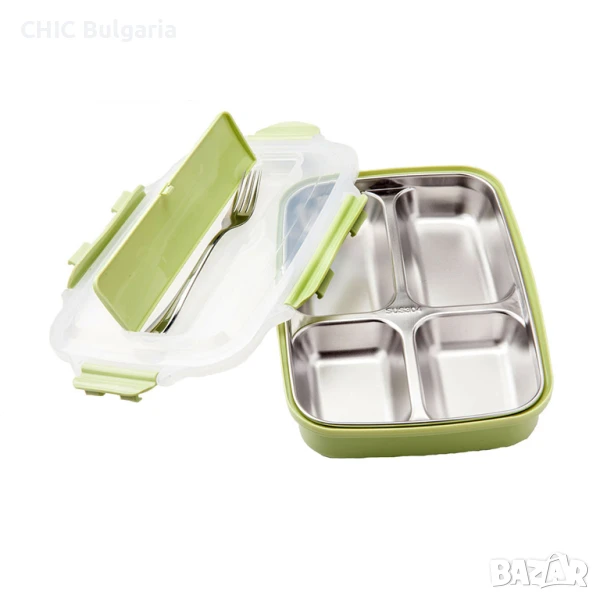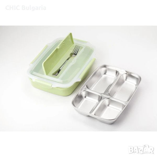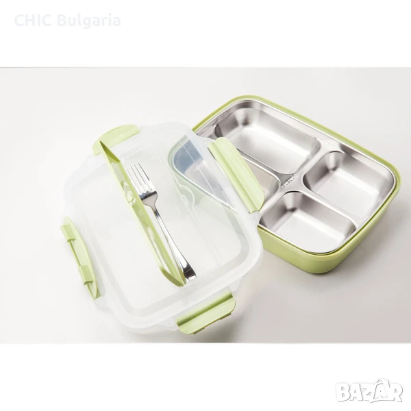 🍱 Кутия за обяд с 4 отделения + прибори – за вкусна и добре организирана храна навсякъде