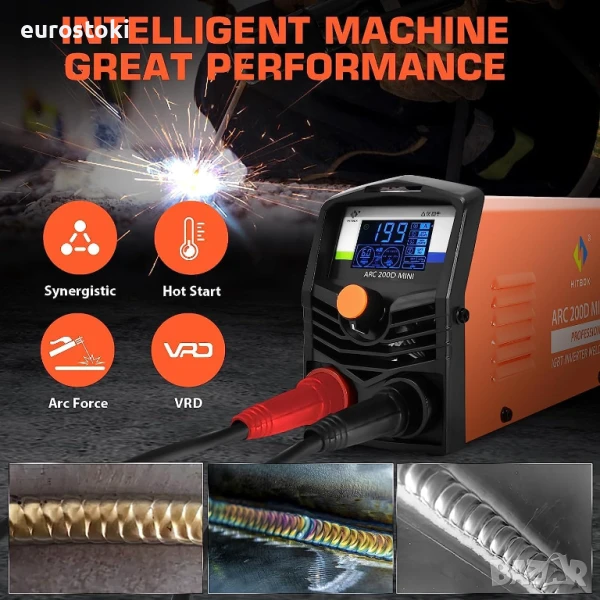 HITBOX MINI ARC200D е много лесен за употреба и може да се използва за практика и малки заваръчни операции. Оборудван е с интелигентен цифров дисплей, алармени светодиоди и индикатор за заваръчния ток.