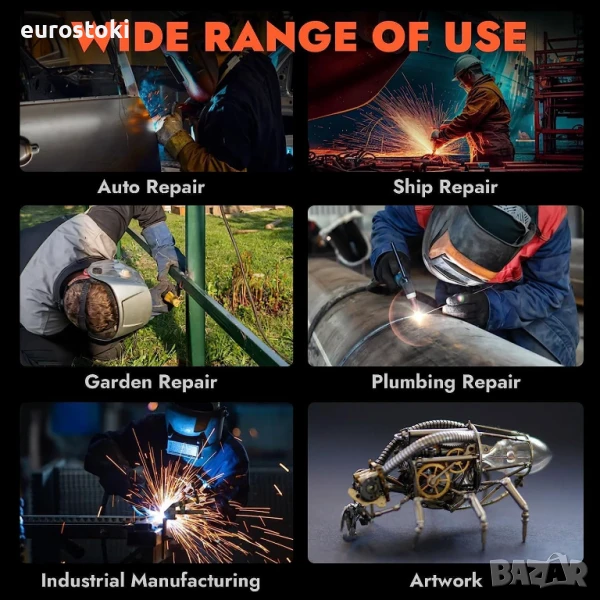 - Вградената технология за системна синергия автоматично съобразява началния ток на дъгата, като същевременно регулира дебелината на метала, така че не е нужно да се притеснявате за заваряване или неуспешно стартиране на дъгата. Инверторният заваръчен апарат е подходящ за „Направи си сам“, поддръжка, ремонт и металообработване.