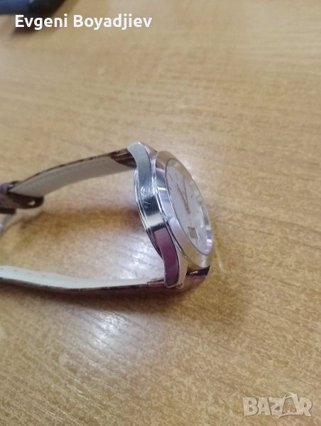 Немски радиосверяем часовник с японски механизъм, стоманена каса и чисто нова испанска каишка от естествена кожа. Часовника е с диаметър 40мм, работи и изглежда перфектно, буквално цепи секундата, сверява се сам, всяка нощ, приема сигнал от кула в Германия. Цената е 60 лева. Благодаря.