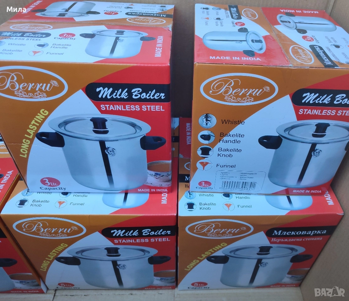 Млековарки Berru от неръждаема стомана, двуслойни стени и дъно, звуков сигнал, нови, в кутия, произход : Индия