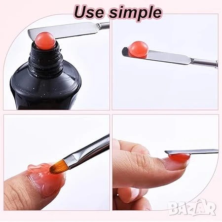 Тази двустранна четка за полигел с шпатула е перфектният инструмент за професионално или любителско изграждане на ноктите с полигел. Нейната заоблена форма наподобява котешко езиче, което я прави идеална за нанасяне на полигел в горни форми.