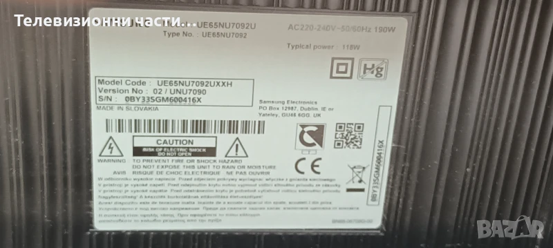 Samsung UE65NU7092U с дефектен екран CY-NN065HGXV1H/BN41-02670A BN94-12873H/BN44-00932G L65E6L_NHS