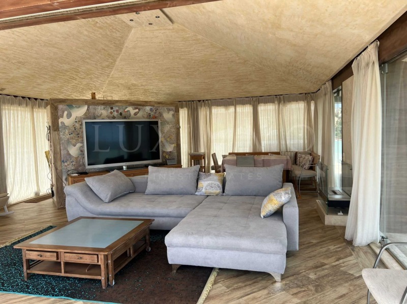 всекидневна с кухня от 150 кв.м и излаз към тераса над 200 кв.м с панорамна гледка към морето;