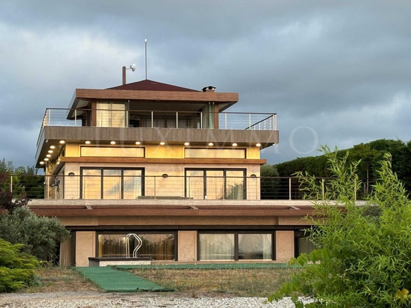 Вилата е с красиво озеленени градини, овощна градина и отделна зона с каравана, лятна кухня и барбекю за пълноценен отдих на брега. Разполага с целогодишно отопляем басейн с размери 12x5 м, система за видеонаблюдение и жива охрана, с автоматизирана поливна система за целия имот.