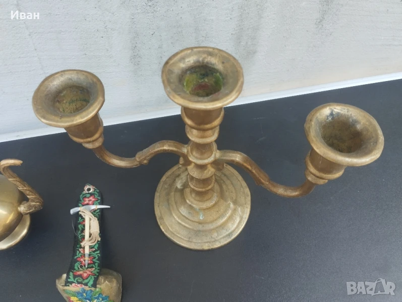 Месингов свещник 3ка, малък ибрик , чан / хлопка , снимка 1 - Антикварни и старинни предмети - 51096162 Месингов свещник 3ка, малък ибрик , чан / хлопка , снимка 2 - Антикварни и старинни предмети - 51096162 Месингов свещник 3ка, малък ибрик , чан / хлопка , снимка 3 - Антикварни и старинни предмети - 51096162 Месингов свещник 3ка, малък ибрик , чан / хлопка , снимка 4 - Антикварни и старинни предмети - 51096162 Месингов свещник 3ка, малък ибрик , чан / хлопка , снимка 5 - Антикварни и старинни предмети - 51096162 1/5