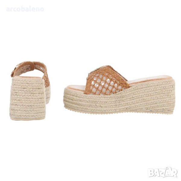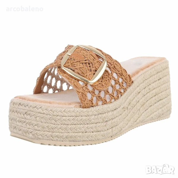 дамски сандали на платформа! Тези уникални сандали, с изкусно изплетена горна част и впечатляваща катарама, са задължителни за жените, които следят модата. Изработени от висококачествени материали, тези обувки не само предлагат страхотен дизайн, но и изключителен комфорт, който ще ви съпътства през целия ден. Ефирната конструкция е идеална за топлите летни месеци и ще се превърне във ваш верен спътник за развлекателни дейности, екскурзии или спокойни дни в града. Шикозната платформа ви позволява да подчертаете женствения си силует, без да жертвате комфорта. Идеални за градински партита, посещения на плажа или разходки из града - тези сандали на платформа са перфектни за всеки повод! Поглезете краката си с този стилен елемент, който ще ви накара да се чувствате напълно комфортно, независимо къде се намирате!