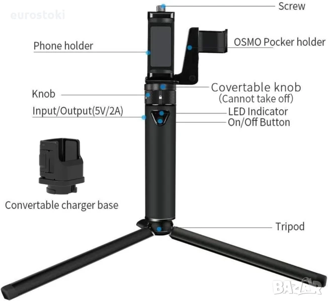 Smatree DP20S преносима външна батерия 5000 mAh, за DJI Osmo Pocket 2/Pocket 1, ръчен държач за смартфон, комплект скоби за джоб и статив за Osmo Pocket