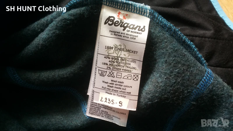 Марка: Bergans of NORWAY EINER Jacket 40% Wool - горница 40% Вълна L235-9 Размер: XL - ширина под мишниците 61 см , разтяга се до 73 см , дължина 86 см заедно с яката , 78 см без яката.