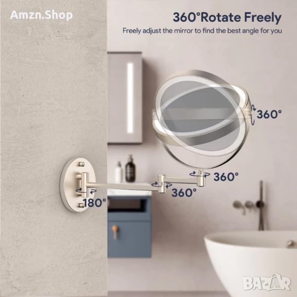 Осветеното огледало за стенен монтаж с разтегателно рамо ви позволява да фиксирате огледалото си в оптимална позиция за перфектно гледане. Регулирайте рамото под всякакъв ъгъл, който желаете. Можете да сгънете огледалото на стената, за да спестите място, когато не го използвате.