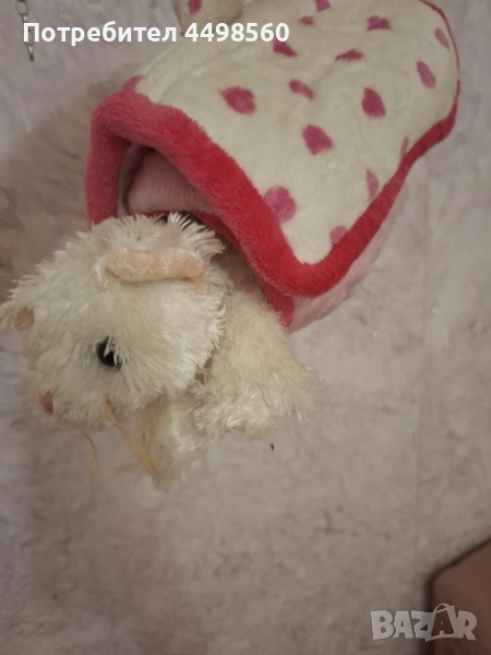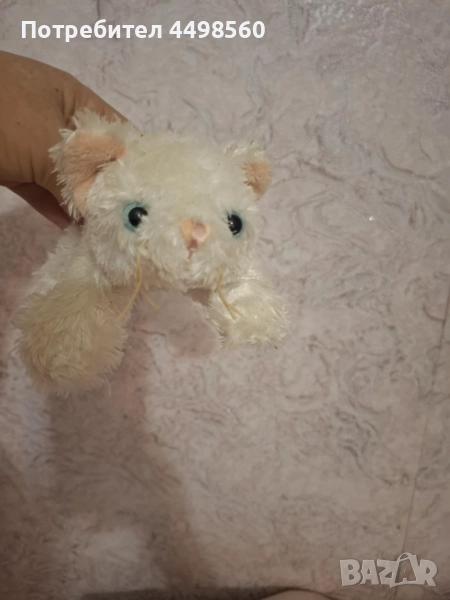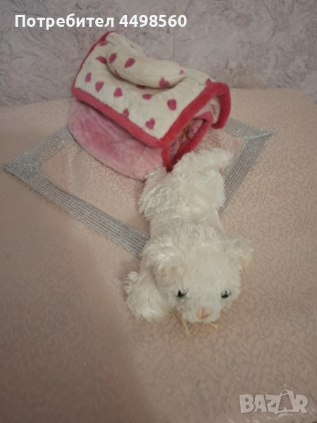 Плюшена играчка пухено бяло котенце с къщичка