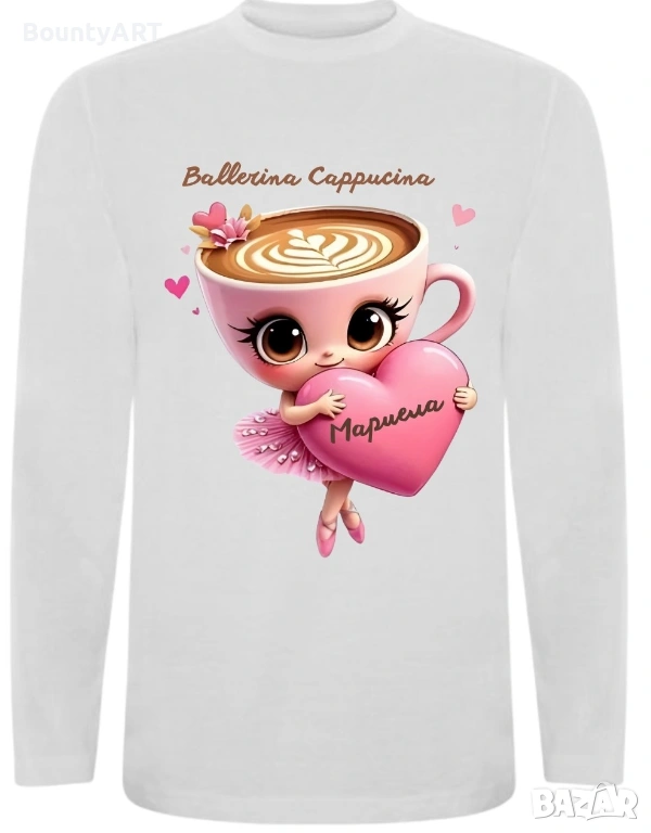 -Балерина Капучина тениска или блузка с дълъг ръкав персонализирана с името на детето.