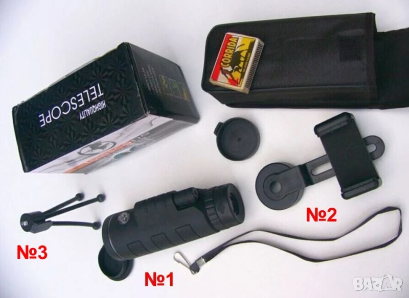 К-т 3-в-1 ТЕЛЕСКОП 40x60 с Компас и Принадлежности Трипод Адаптер Стойка за Камера Смартфон БАРТЕР