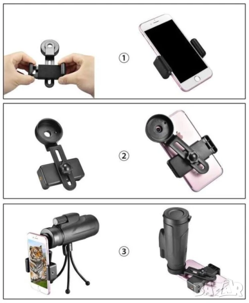 №2: АДАПТЕР за окуляр с универсален ДЪРЖАЧ за Смартфон;
