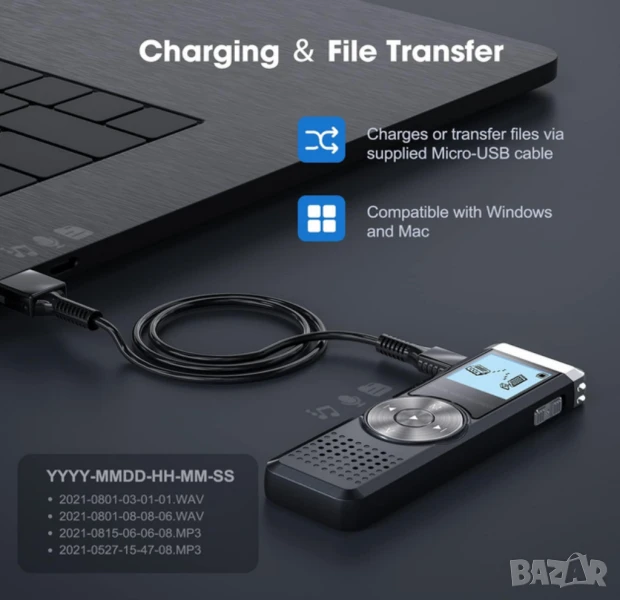 Подходящ за запис на уроци, лекции, презентации, интервюта, подслушани разговори, практикуване на чужди езици и пеене и др.