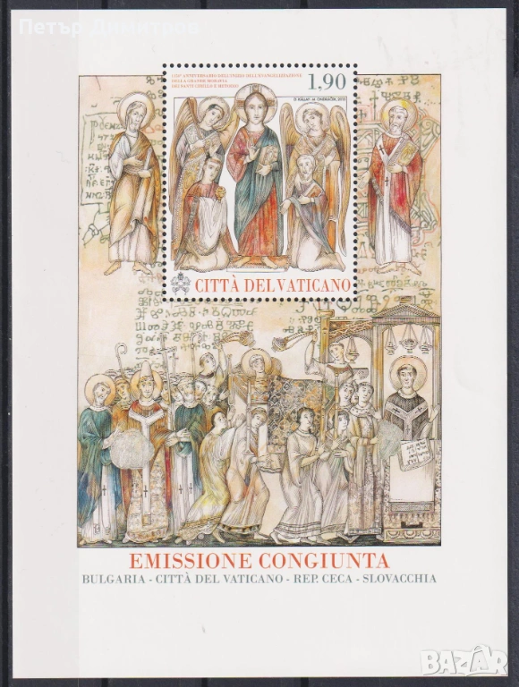 1. Чист блок Моравската мисия на Св. Св. Кирил и Методий 2013 от Ватикана. Съвместно издание на България, Ватикана, Чехия и Словакия. Цена € 3,80 (сн. 1)