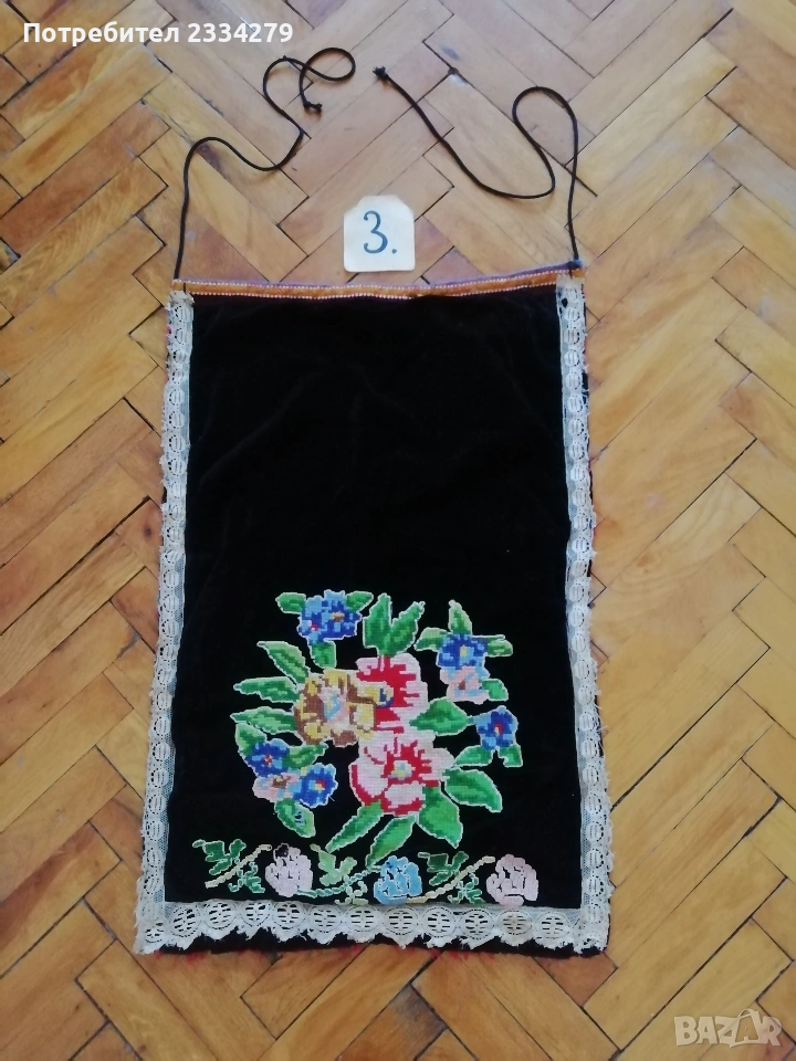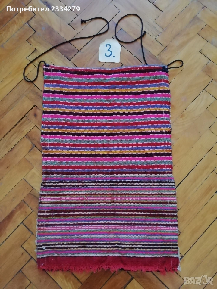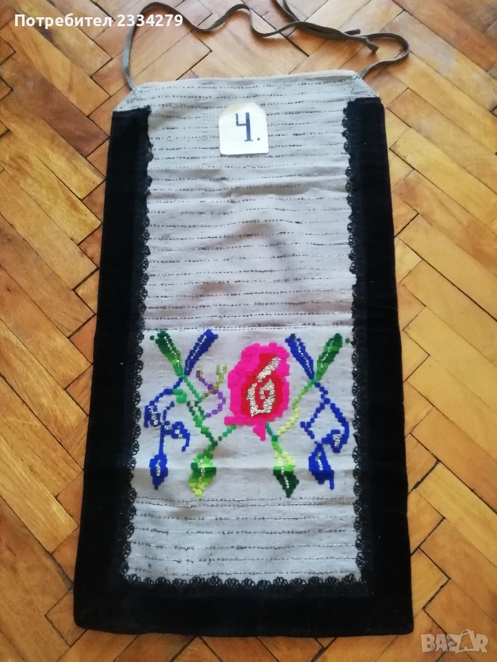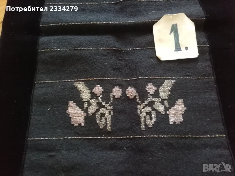 Стари автентични неупотребявани престилки, ръчно изработени. N:1 размери 73х42см., цена 15€.; N:2 стара неупотребявана празнична пристилка от странджанският край, тъкан плат, сърмени орнаменти, размери 83х45см., цена 10€.; N:3 стара престилка от ТРОНСКИЯТ край, ръчна изработка, орнаменти: ръчна бродерия върху плат кадифе и обкраена с дантела, 100% автентичност, размери 63х43см.,цена 17€., може да ползваш, колекционираш или декорация в битов стил.; N:4 стара неупотребявана празнична пристилка от Ямболско, страндженският край, ръчна изработка бродирана върху тъкан плат със сърмени нишки, обкраена с черен кант от кадифе и дантела, размери 73х39см., цена 25€., перфектно запазена.