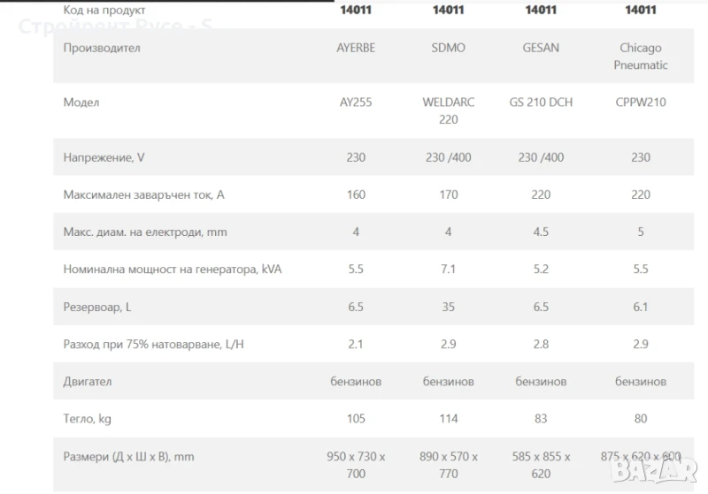 Заваръчен агрегат с генератор за ток под наем, 220А