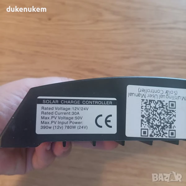2. Соларен контролер 60А, 12V/24V, Максимална PV мощност: 780W (при 12V), 520W (при 24V) - 50 лв с ДДС, налични 2 броя