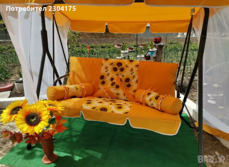 Сезонно намаление:Комплект тапицерия за градинска люлка -сенник и седалка с облегалка мека част. → Обява 51100754