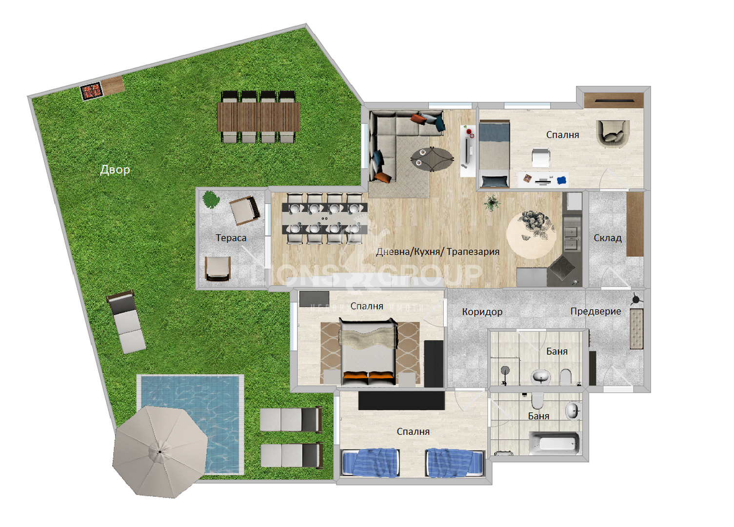 Лайънс Груп недвижими имоти е фирма с дългогодишен опит в сферата на недвижимите имоти. Ние познаваме и предлагаме всички актуални оферти на пазара за недвижими имоти, като ще ви запознаем напълно БЕЗПЛАТНО с тях при консултация в нашия офис. Лайънс Груп извършва всички технически и юридически проверки на имота, който сте избрали. Агенцията също така съдейства и за отпускане на банков кредит при индивидуални преференциални условия за своите клиенти.