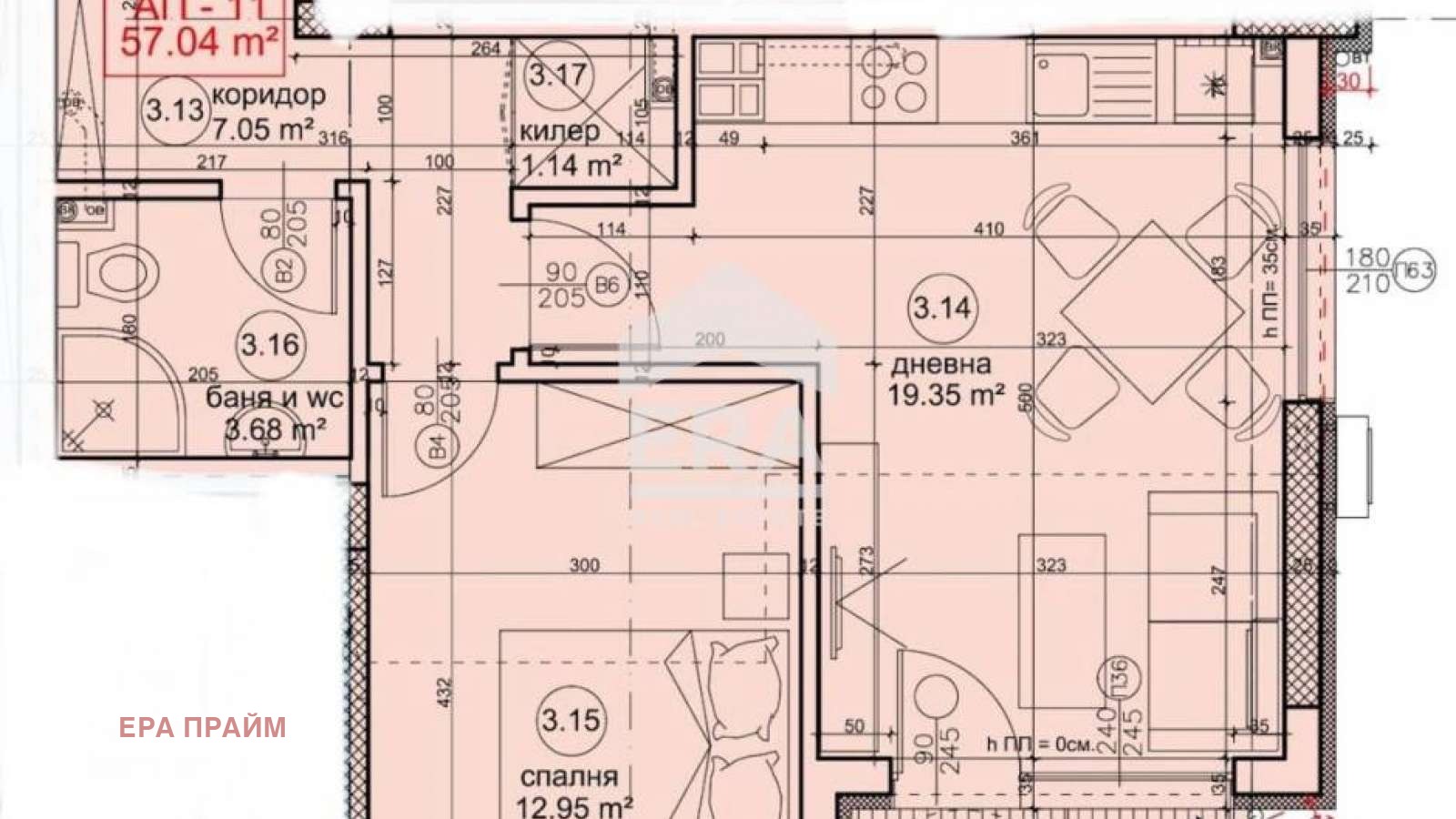 Площ: 65 кв.м ( с общи части )